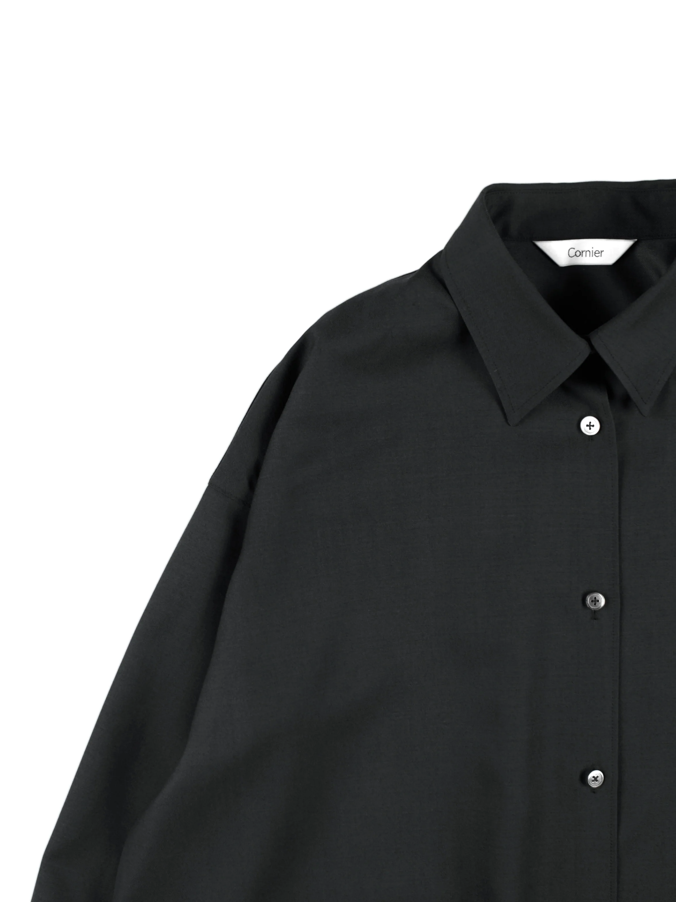 高繊度ウール原料を使用したウールギャバジン素材のロングシャツドレス。