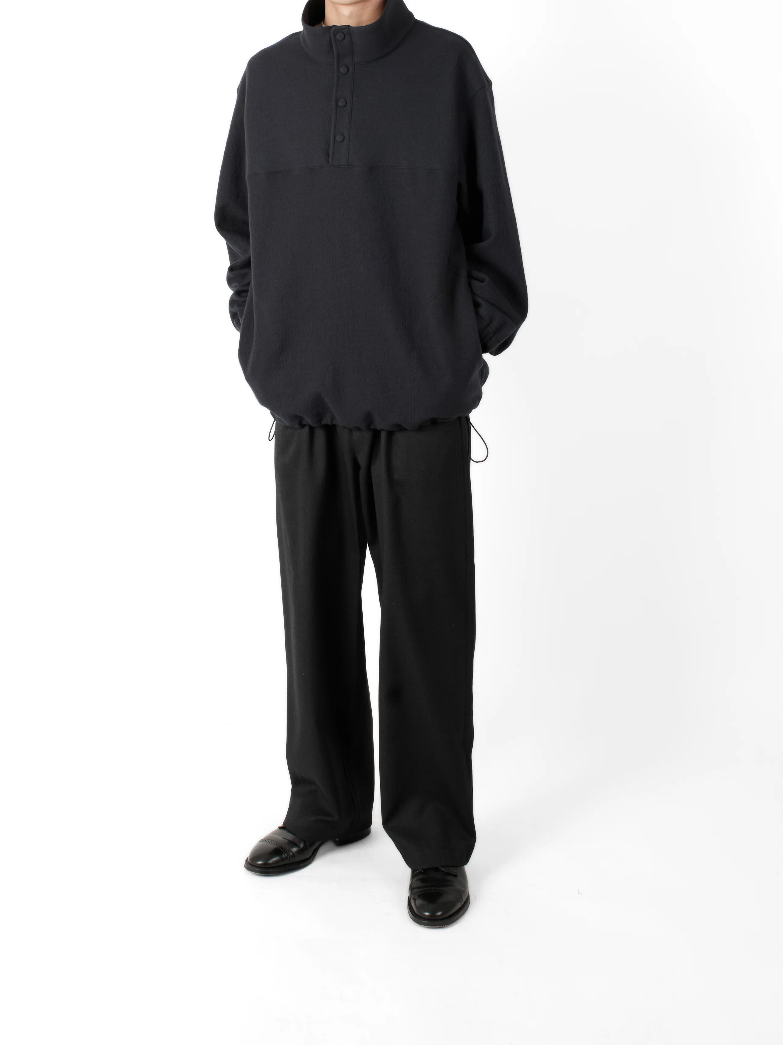 Super160's WOOL CRATER JERSEY PULLOVER|BLACK